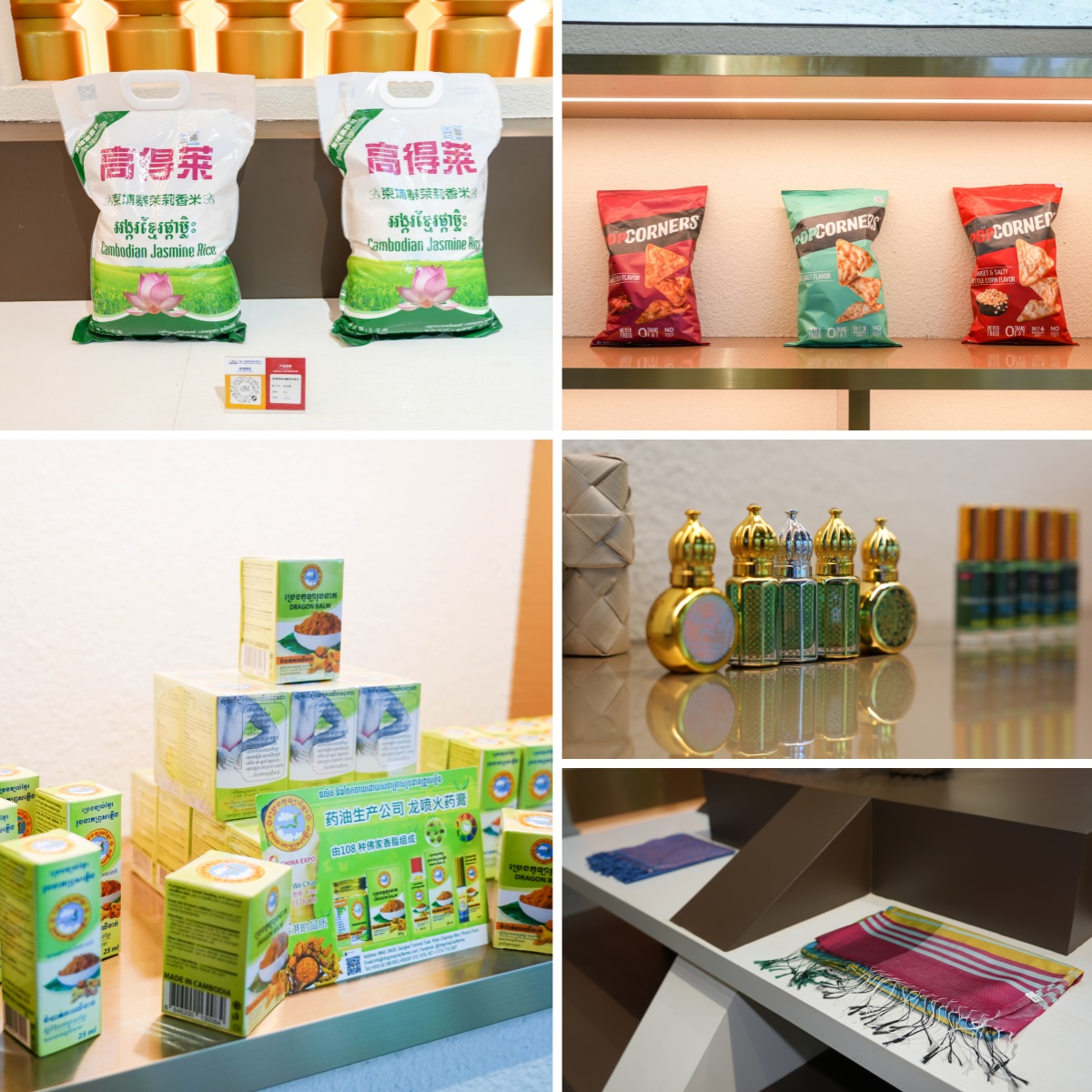 柬埔寨主題館內(nèi)集中展示了香米、棕糖、啤酒等特色商品。這些甄選自當(dāng)?shù)氐牡氐里L(fēng)物,以其獨(dú)特的風(fēng)味備受青睞,向到訪嘉賓傳遞著舌尖上的高棉風(fēng)情。