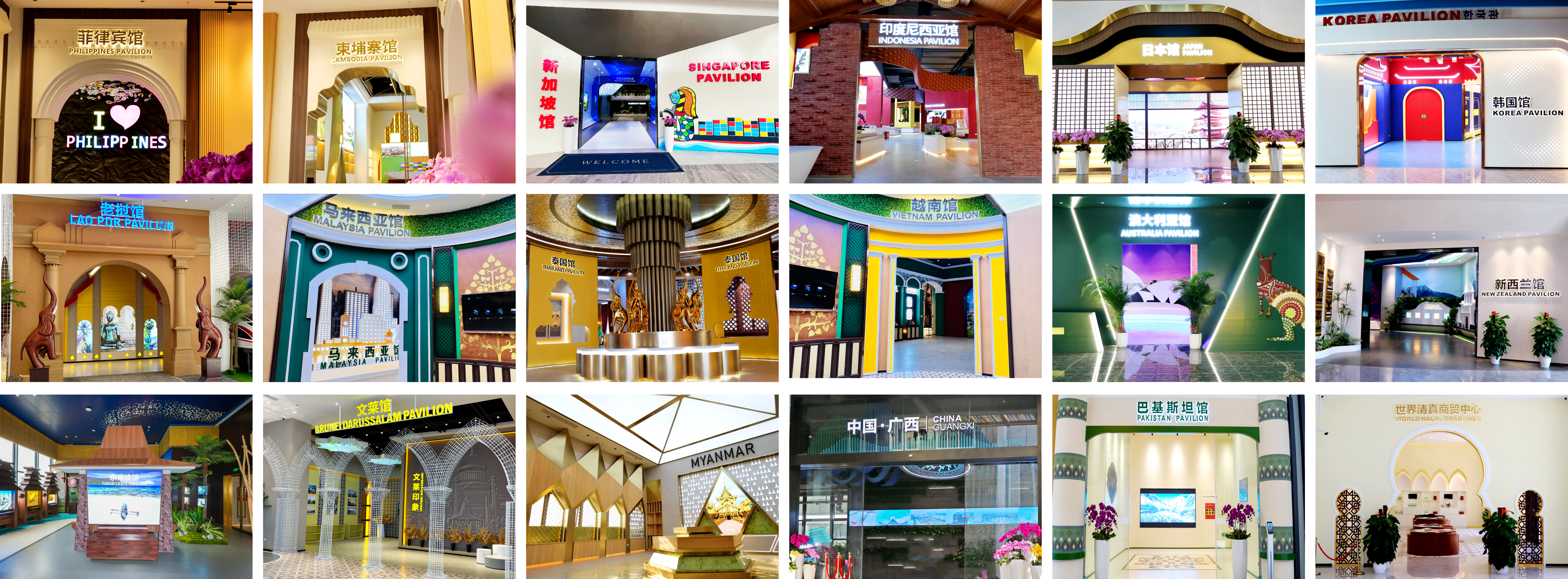 匯聚中心共建設(shè)有18個(gè)文化主題館。其中11個(gè)東盟國家主題館(文萊館、柬埔寨館、印度尼西亞館、老撾館、馬來西亞館、緬甸館、菲律賓館、新加坡館、泰國館、東帝汶館、越南館),1個(gè)地方館(廣西館),1個(gè)特色館(世界清真商貿(mào)中心),“一帶一路”沿線首個(gè)國家主題館--巴基斯坦館以及RCEP其他區(qū)域國家主題館(日本館、韓國館、澳大利亞館、新西蘭館),通過提取各國特色建筑景觀和人文風(fēng)俗等經(jīng)典元素,以沉浸式的體驗(yàn)呈現(xiàn)各國特色商品,不僅促進(jìn)了國際經(jīng)貿(mào)合作與交流,還為國內(nèi)外客戶提供相應(yīng)的配套服務(wù),例如小語種翻譯、公司注冊、投融資服務(wù)、資源配對、人才培訓(xùn)、品牌運(yùn)營等 ,以此吸引更多的國內(nèi)外商家到廣西、或通過廣西進(jìn)入中國其他省份投資興業(yè);我們也希望通過所搭建的平臺,幫助更多有意向到東盟乃至RCEP其他區(qū)域國家發(fā)展的商家提供省時(shí)省力省錢的一站式參與國際市場的發(fā)展機(jī)遇。